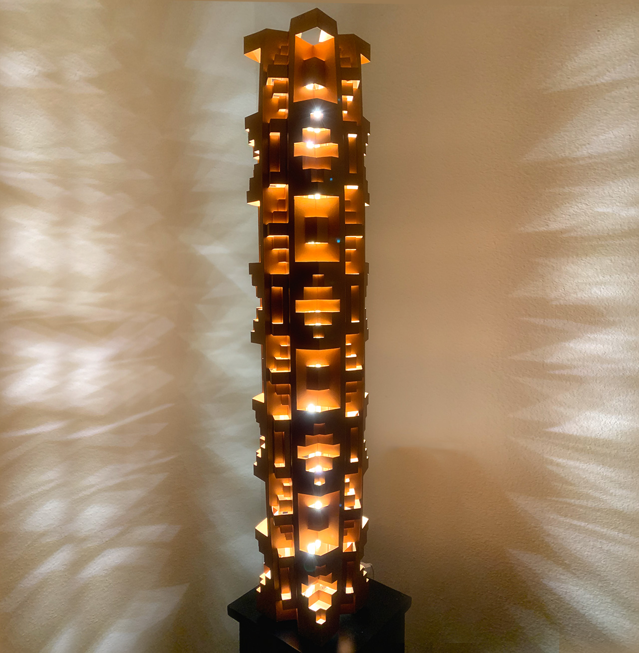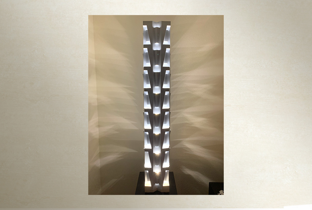 Felipe’s lamp sculptures are unique and beautiful in ambiant and natural light yet take on a life of their own when their lights are activated creating shadows that extend beyond the sculptures themselves.
